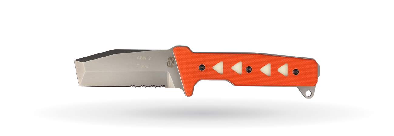 Eickhorn RT Series Rescue Tools: The ABW II has been developed with special fire brigade teams as a super heavy duty entry and rescue tool. To lever (doors and windows), break glass, sever ropes and cutting are functions combined in this single-Entry Tool. Due to its massive form and G-10 grips it is designed to be used with gloves. Luminescent triangular inserts help orient the user. The tool is completed with a Kydex sheath and belt adapter.