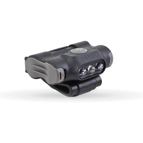 Can be mounted on MOLLE webbing, shoulder straps, pocket openings and caps, Can fold 180° and weighs only 49 grams, 3 modes, White (17 lumens) Red (3 lumens) and Red/Blue flashing, Runtime 7h30min (White), 18h (Red) and 62h (Red/Blue), Beam distance is 13m (White) and 6m (Red), Water resistant to IPX4, Batteries: 2 x AAA (included), Dimensions: 54mm x 48mm x 32mm