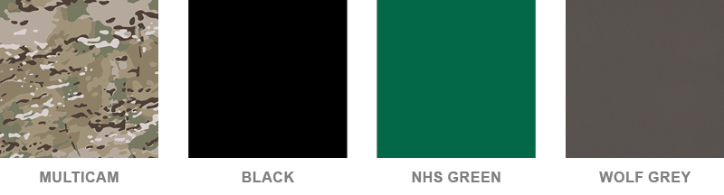 Available in Multicam, Black, NHS Green and Wolf Grey.